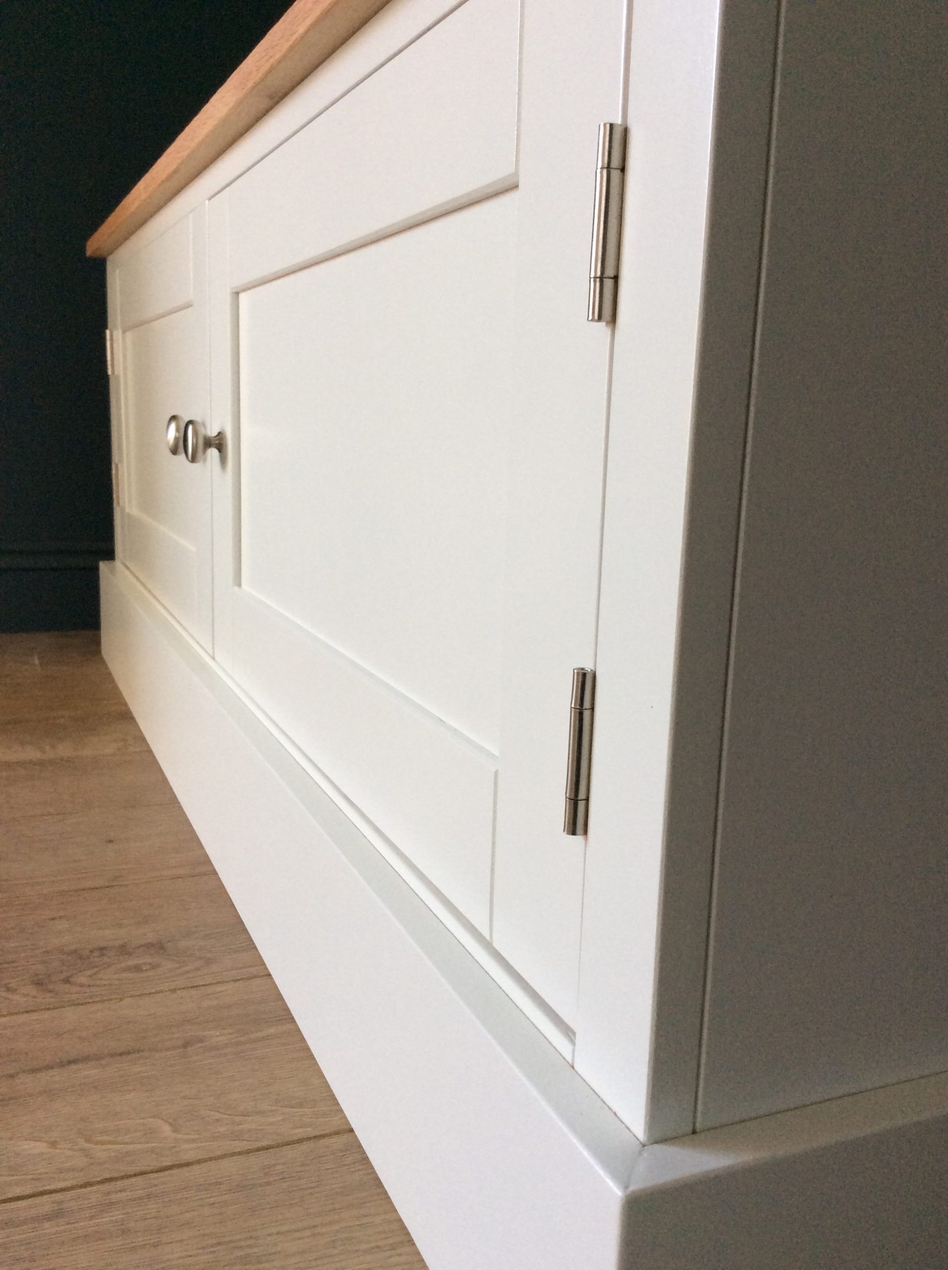 The paint used at our workshop for the painted furniture is a Catalysed Paint which is specially produced for furniture. It is very tough, hardwearing and also gives a beautifully smooth, wipeable finish. Not all manufacturers will use a catalysed paint because it is more expensive, but we believe it’s the best option for all painted furniture. The paint we use is a professional grade paint which is mixed to match any Farrow and Ball colour, as Farrow and Ball paint itself isn’t suitable for our spray system. Whilst the colours are incredibly accurate we can’t guarantee them to be 100% accurate