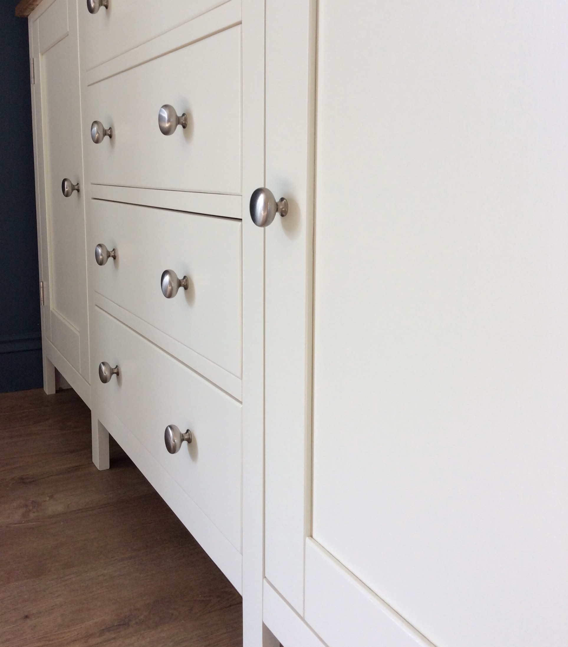 The paint used at our workshop for the painted furniture is a Catalysed Paint which is specially produced for furniture. It is very tough, hardwearing and also gives a beautifully smooth, wipeable finish. Not all manufacturers will use a catalysed paint because it is more expensive, but we believe it’s the best option for all painted furniture. The paint we use is a professional grade paint which is mixed to match any Farrow and Ball colour, as Farrow and Ball paint itself isn’t suitable for our spray system. Whilst the colours are incredibly accurate we can’t guarantee them to be 100% accurate