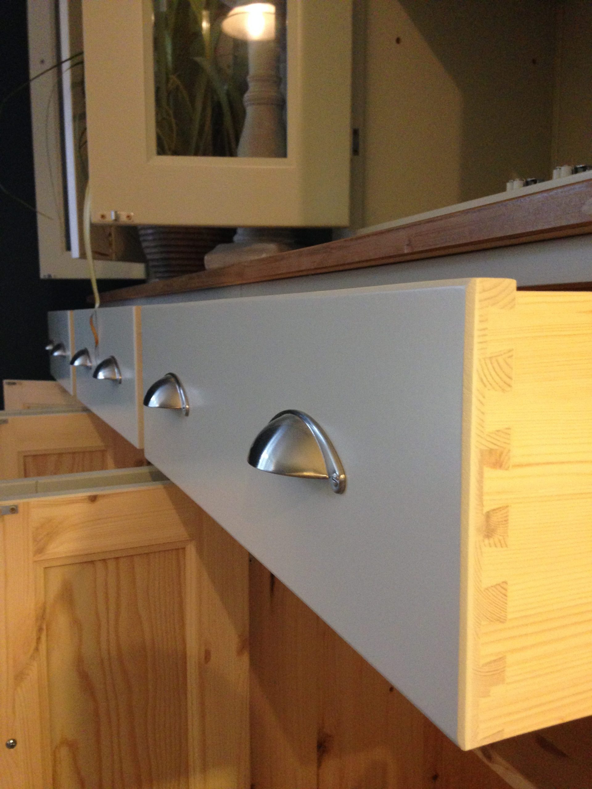 IT HAS BRUSHED CHROME CUP & ROUND HANDLES BUT YOU CAN CHOOSE TO HAVE ALL ROUND IF YOU PREFER AS WELL AS ANY FARROW & BALL COLOUR INCLUDED IN THE PRICE.