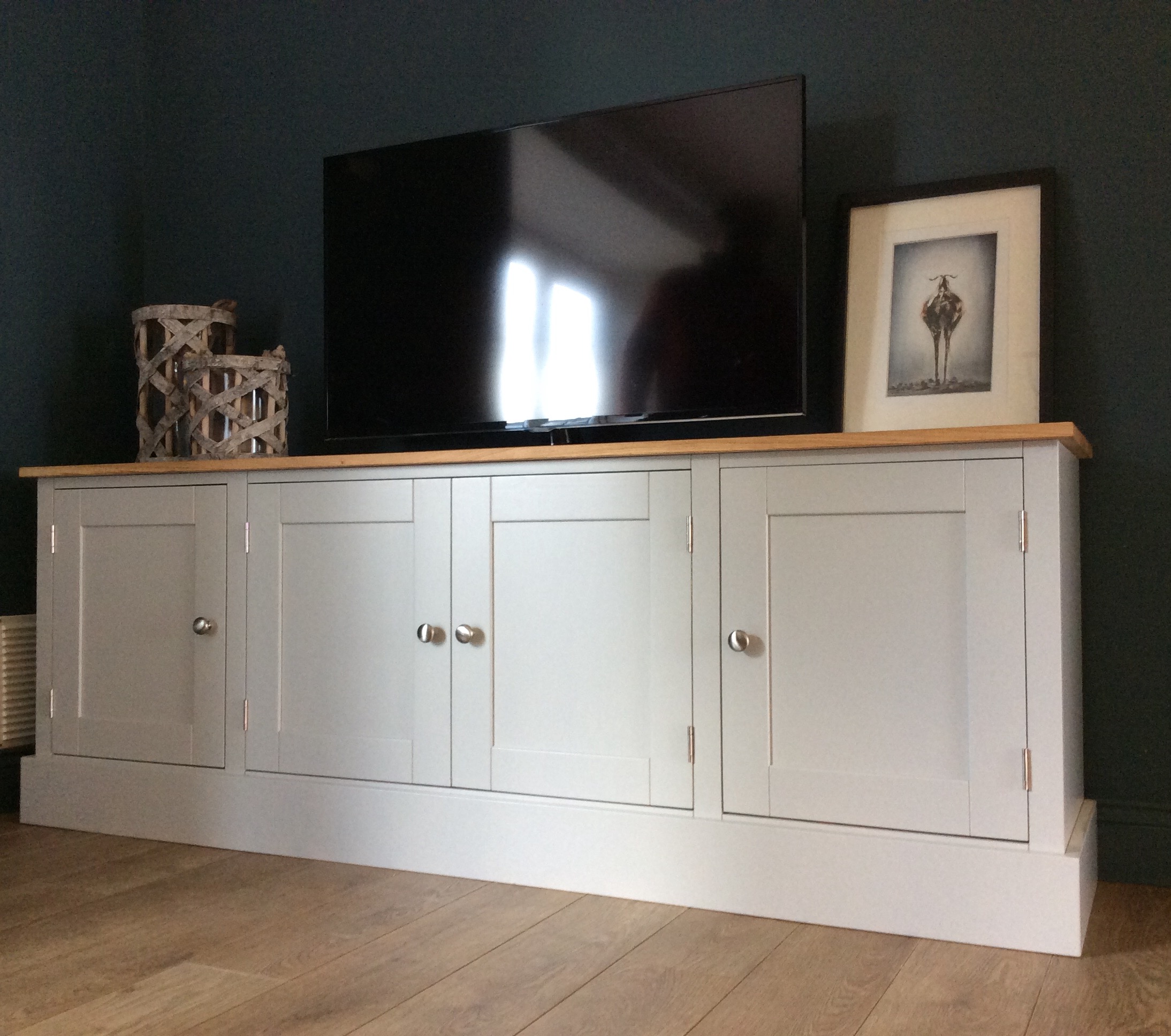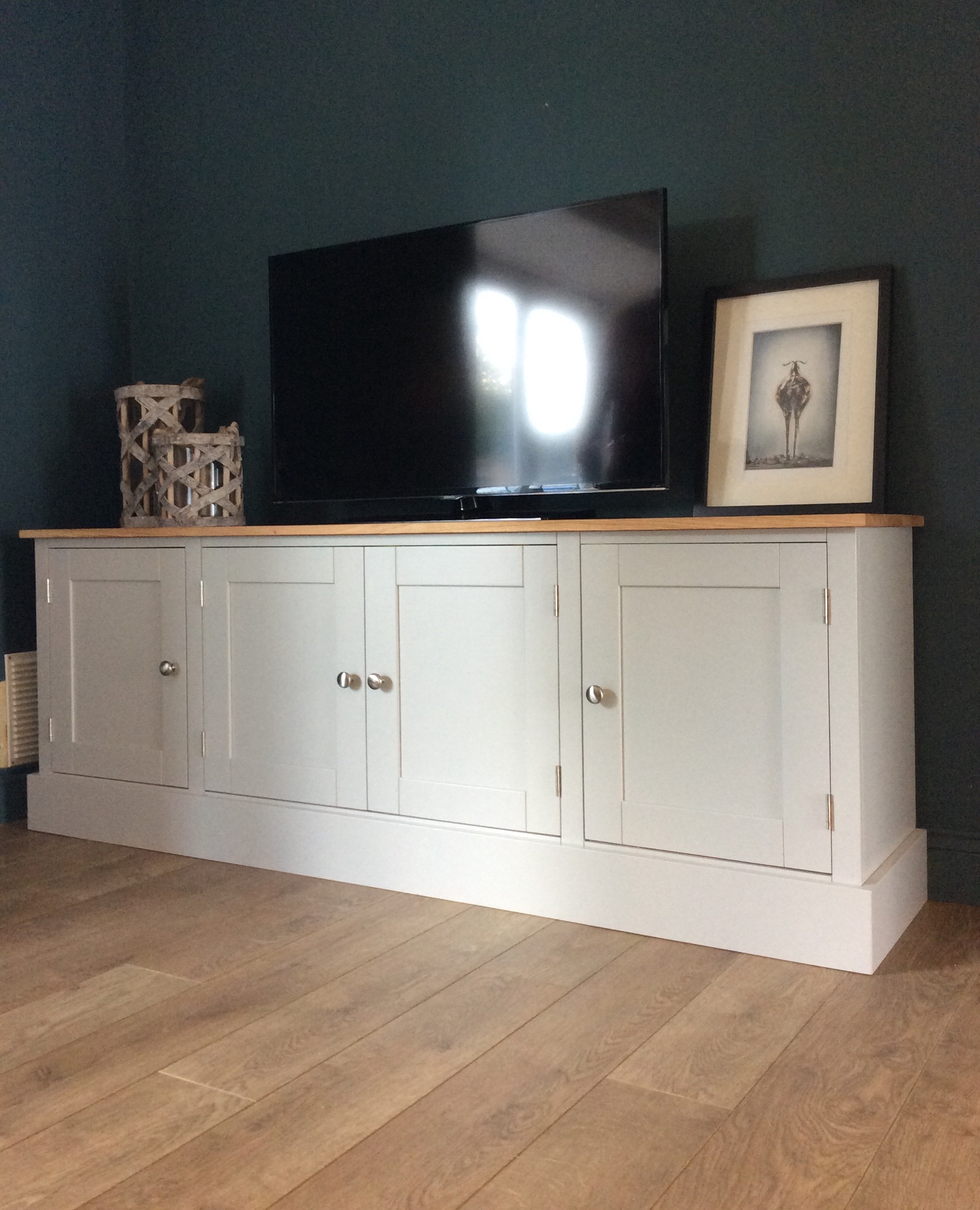 THIS PARTICULAR TV UNIT IS PAINTED IN ‘PURBECK STONE’ BY FARROW & BALL BUT YOU CAN CHOOSE ANY COLOUR FROM THEIR RANGE.