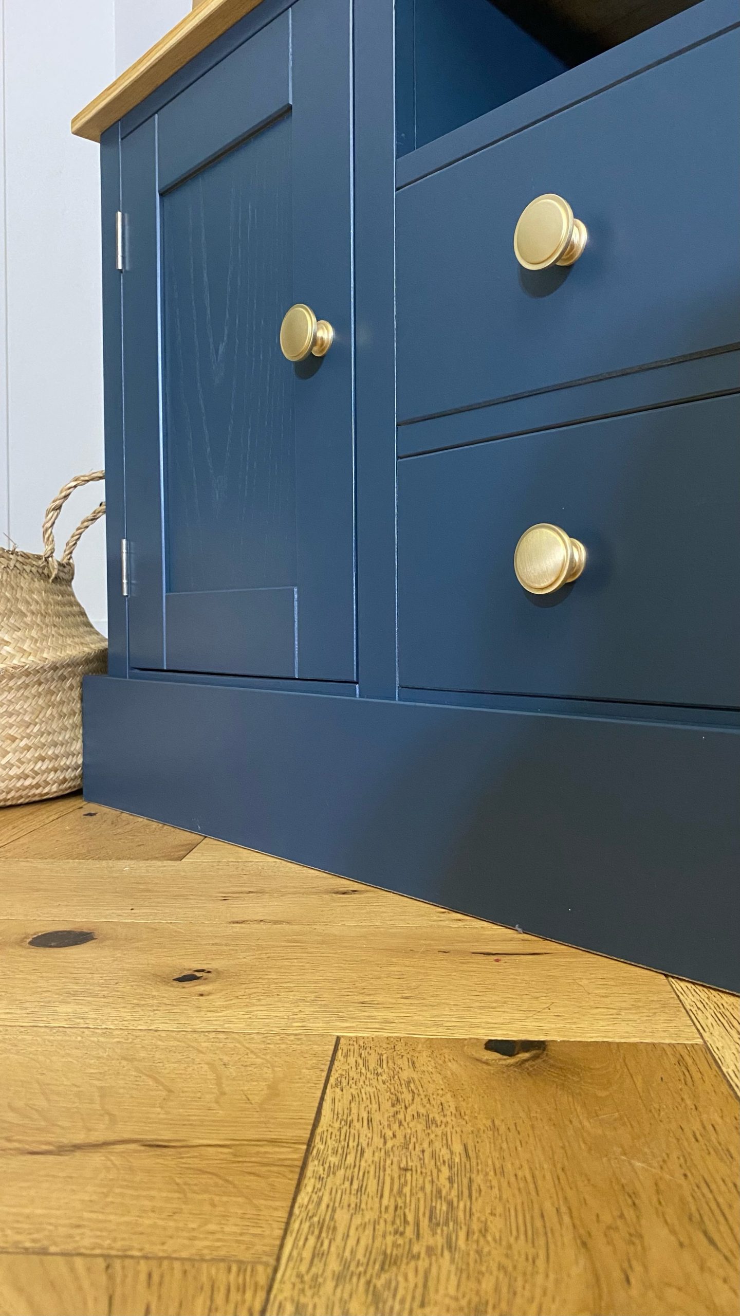 The paint used at our workshop for the painted furniture is a Catalysed Paint which is specially produced for furniture. It is very tough, hardwearing and also gives a beautifully smooth, wipeable finish. Not all manufacturers will use a catalysed paint because it is more expensive, but we believe it’s the best option for all painted furniture. The paint we use is a professional grade paint which is mixed to match any Farrow and Ball colour, as Farrow and Ball paint itself isn’t suitable for our spray system. Whilst the colours are incredibly accurate we can’t guarantee them to be 100% accurate