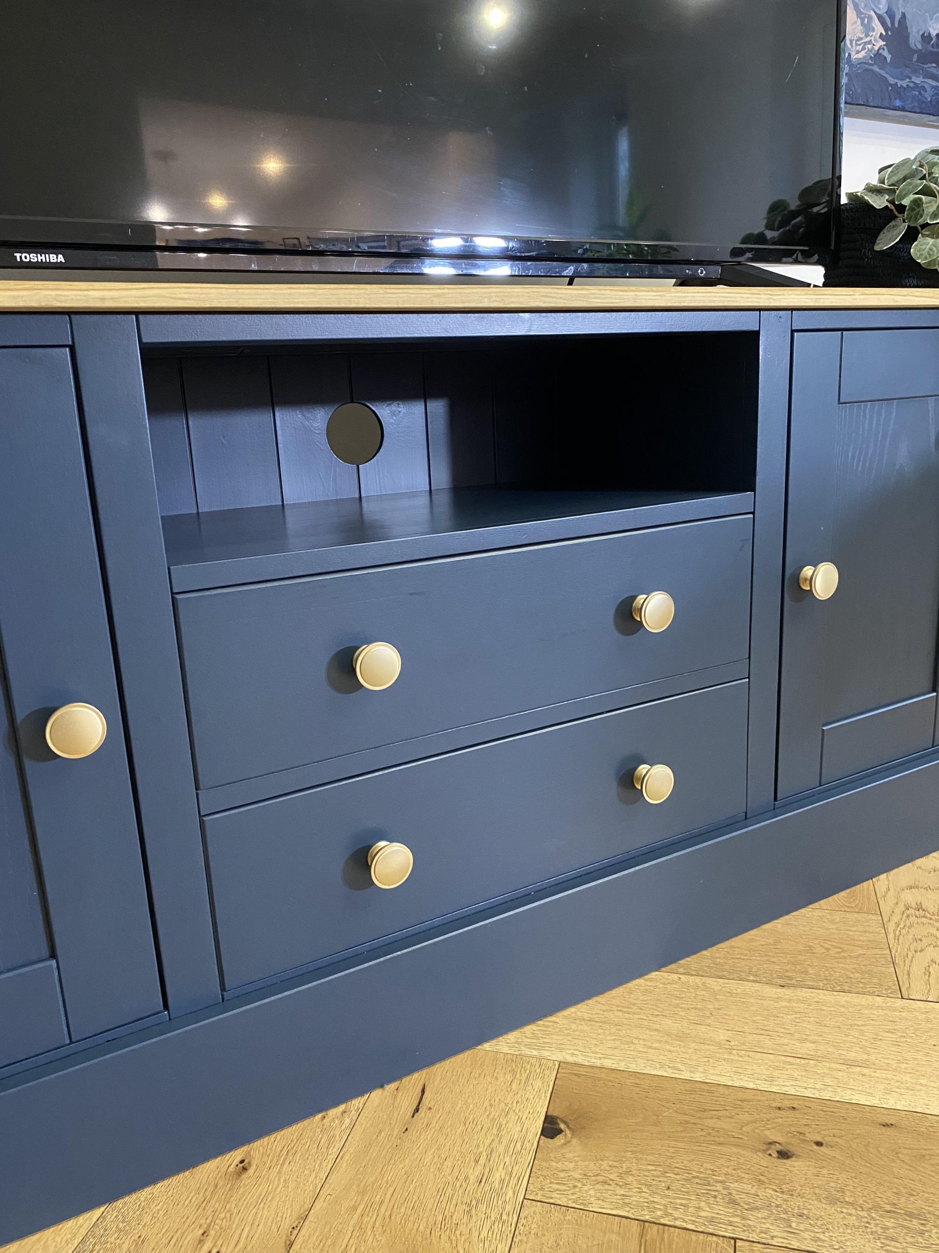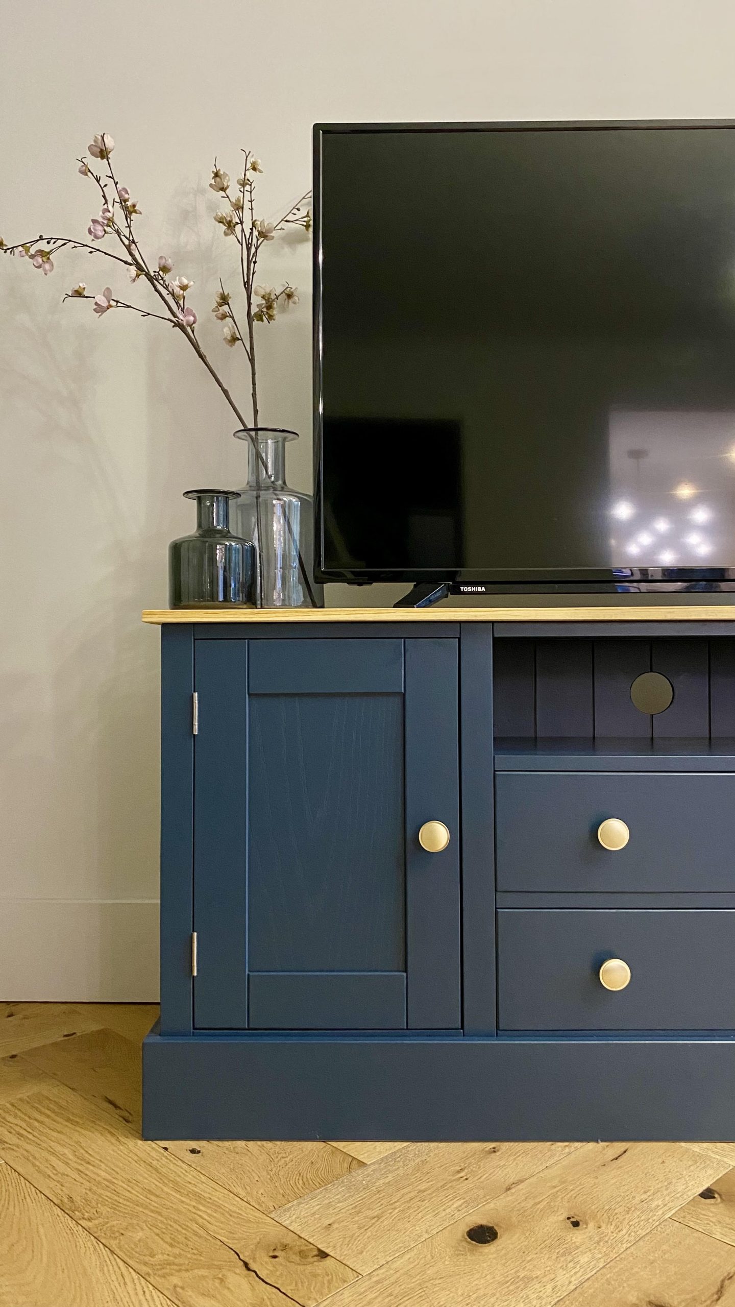 If you are ordering a TV Dresser with or without bifolding doors then we can alter the width of the TV section to ensure your TV fits and because TV sizes vary so much, we make this alteration on nearly all orders for these units. So when ordering just let us know in cms how wide you’d like this space to be and we’ll make it to that size. We don’t charge anything for this alteration.