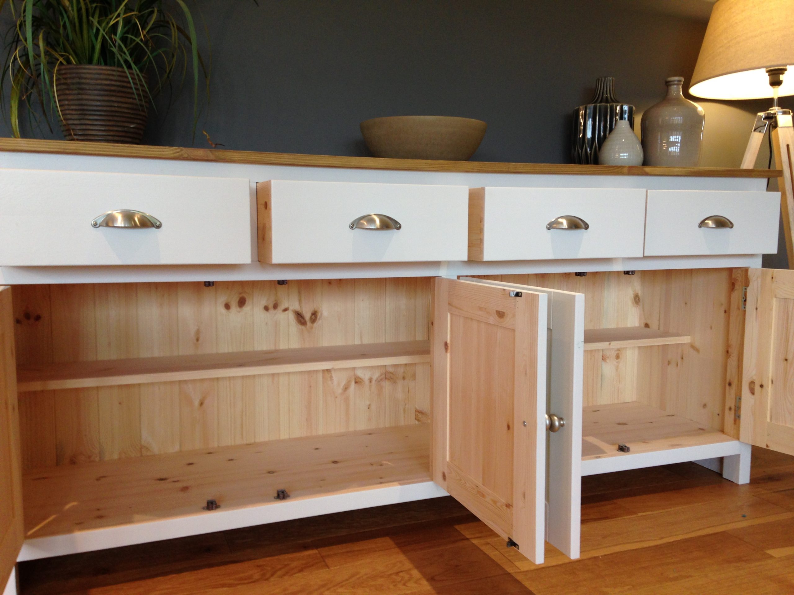 A GORGEOUS SOLID PINE SIDEBOARD WHICH, BECAUSE OF ITS DESIGN WORKS VERY WELL IN BOTH MODERN & TRADITIONAL SETTINGS.