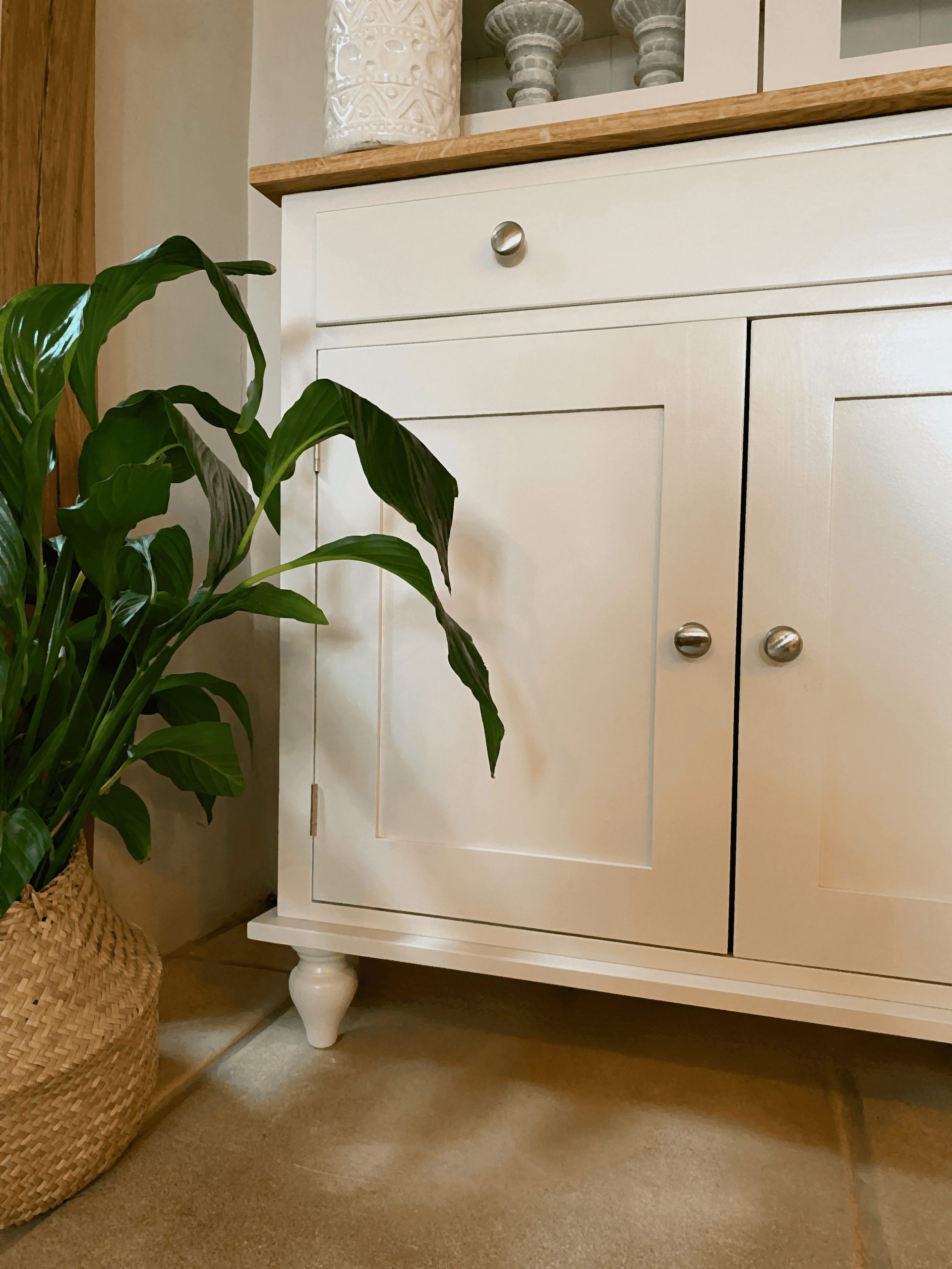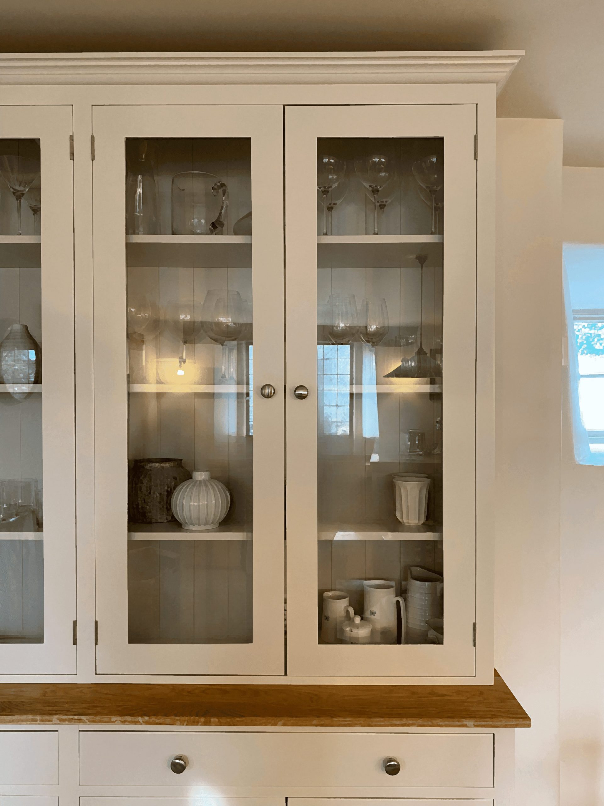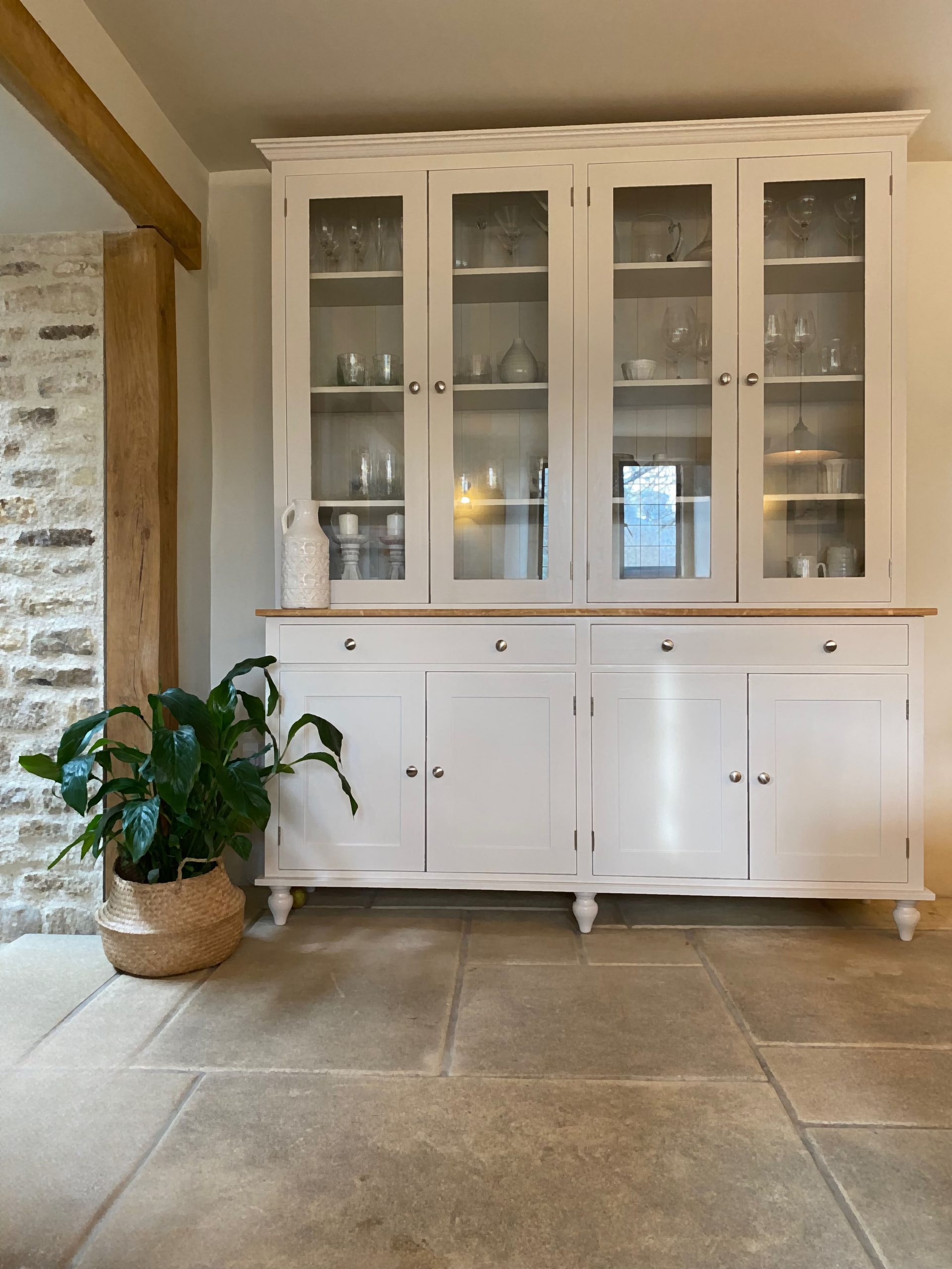 PART OF OUR ODELL RANGE, THIS CALM, STYLISH WELSH DRESSER COMES WITH A SOLID OAK WORKTOP. THE BEAUTIFUL BLONDE TONES IN THE OAK SETS OFF MOST COLOUR PALETTE’S PERFECTLY. CHOOSE FROM ANY FARROW AND BALL COLOUR, YOU CAN ALSO CHOOSE THE EVER POPULAR PAINTED WORKTOP OR THE WAXED PINE WORKTOP.