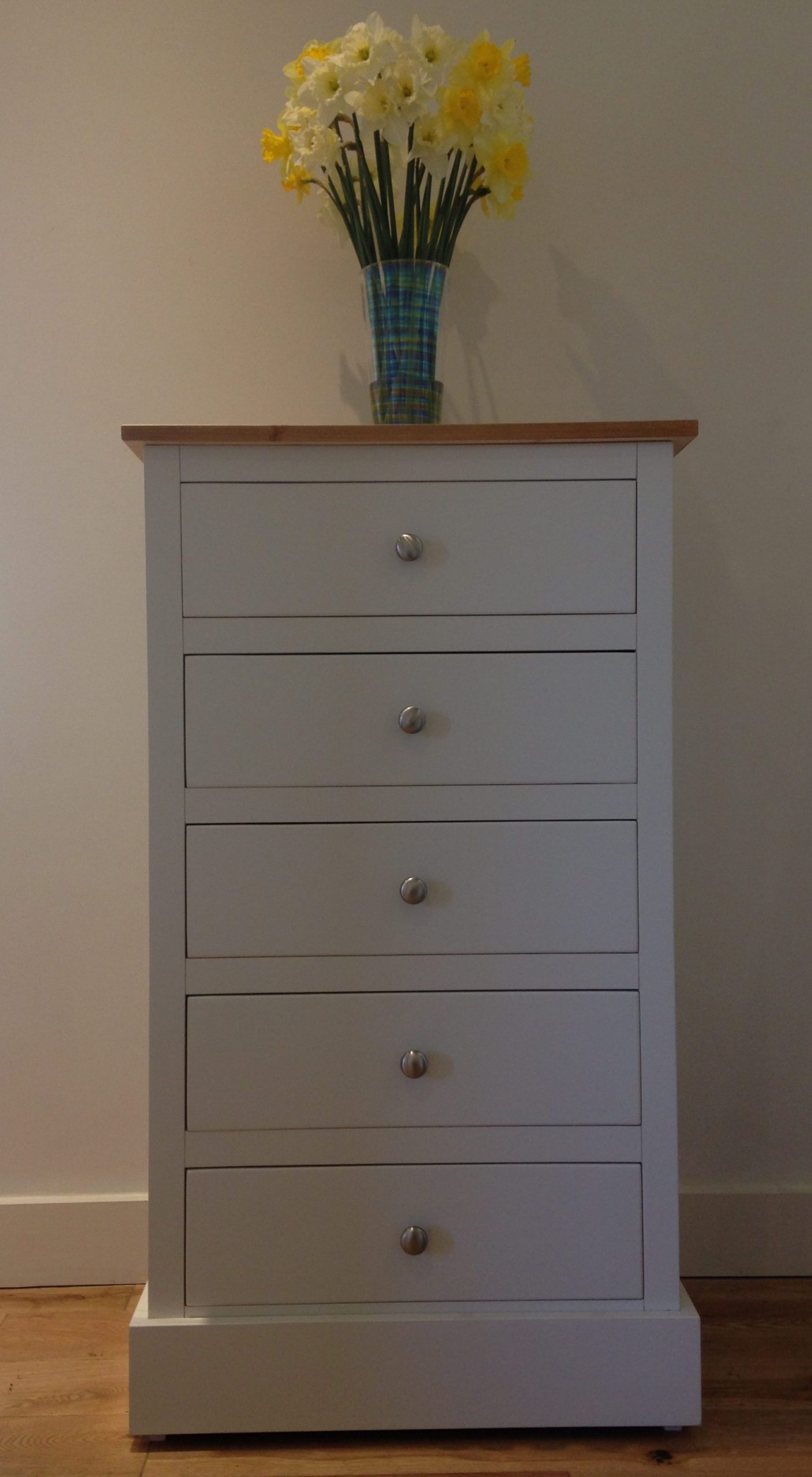 THIS CHEST OF DRAWERS HAS A SOLID PINE WAXED TOP, SHAKER DRAWERS & A LARGE PLAIN PLINTH. MADE OF SOLID PINE THROUGHOUT, NO MDF OR CHIPBOARD, & WITH ALL DOVETAILED JOINTS.