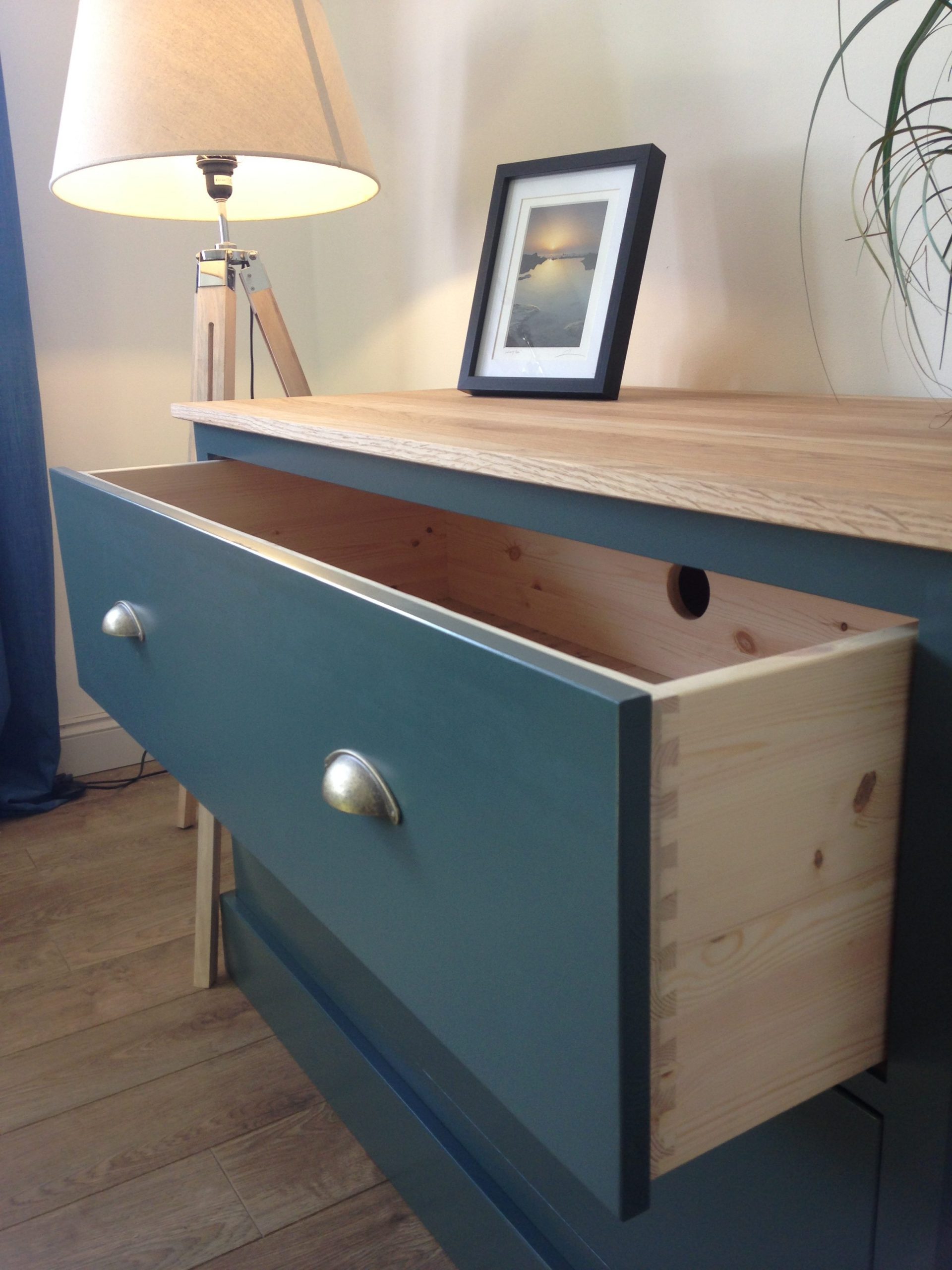 THE REST OF THE UNIT IS MADE OF SOLID PINE AND THE DRAWERS ALL HAVE DOVETAILED JOINTS MADE HERE IN THE UK. IT CAN BE PAINTED IN ANY FARROW AND BALL COLOUR OF YOUR CHOICE.