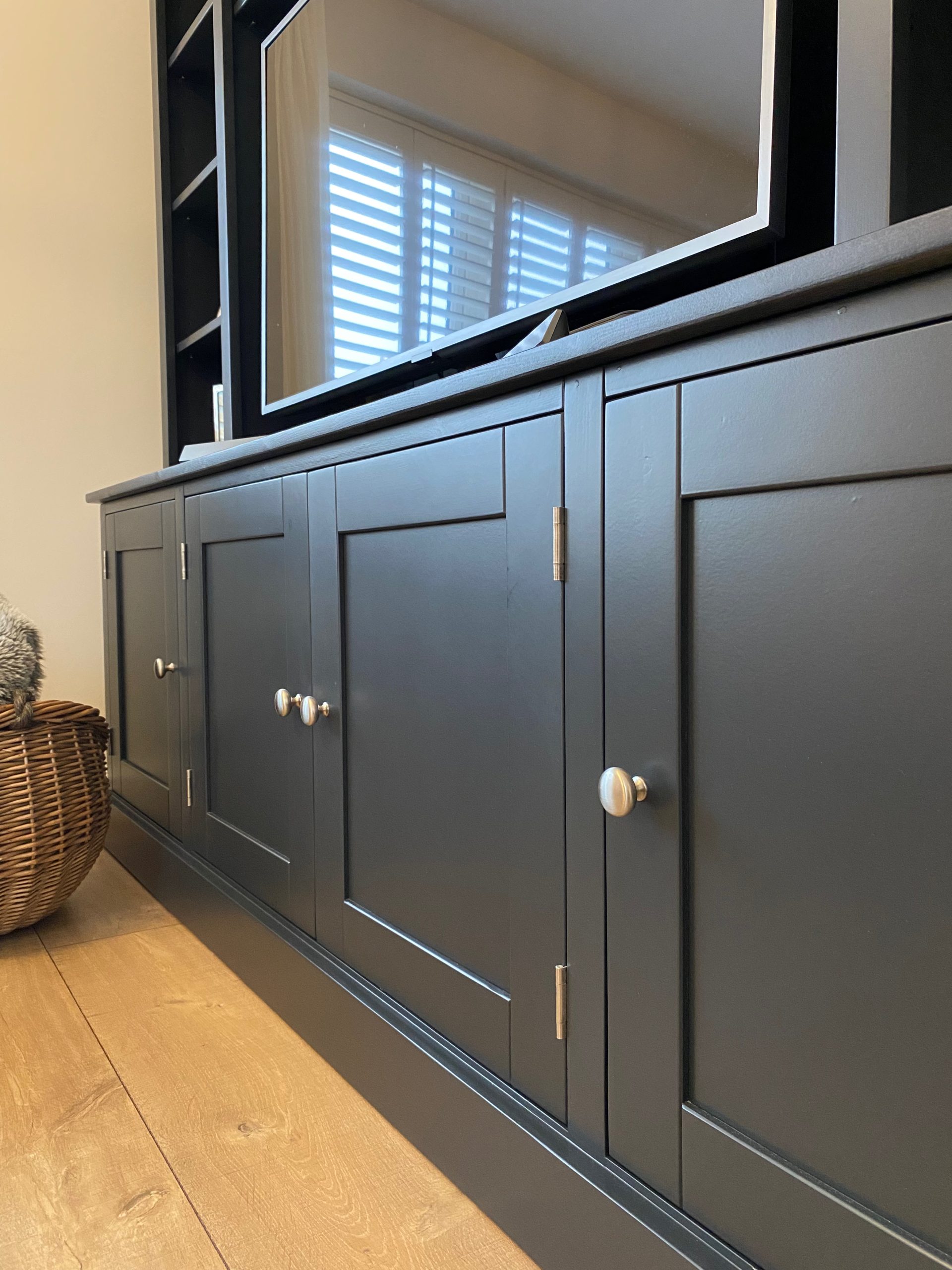 The paint used at our workshop for the painted furniture is a Catalysed Paint which is specially produced for furniture. It is very tough, hardwearing and also gives a beautifully smooth, wipeable finish. Not all manufacturers will use a catalysed paint because it is more expensive, but we believe it’s the best option for all painted furniture. The paint we use is a professional grade paint which is mixed to match any Farrow and Ball colour, as Farrow and Ball paint itself isn’t suitable for our spray system. Whilst the colours are incredibly accurate we can’t guarantee them to be 100% accurate