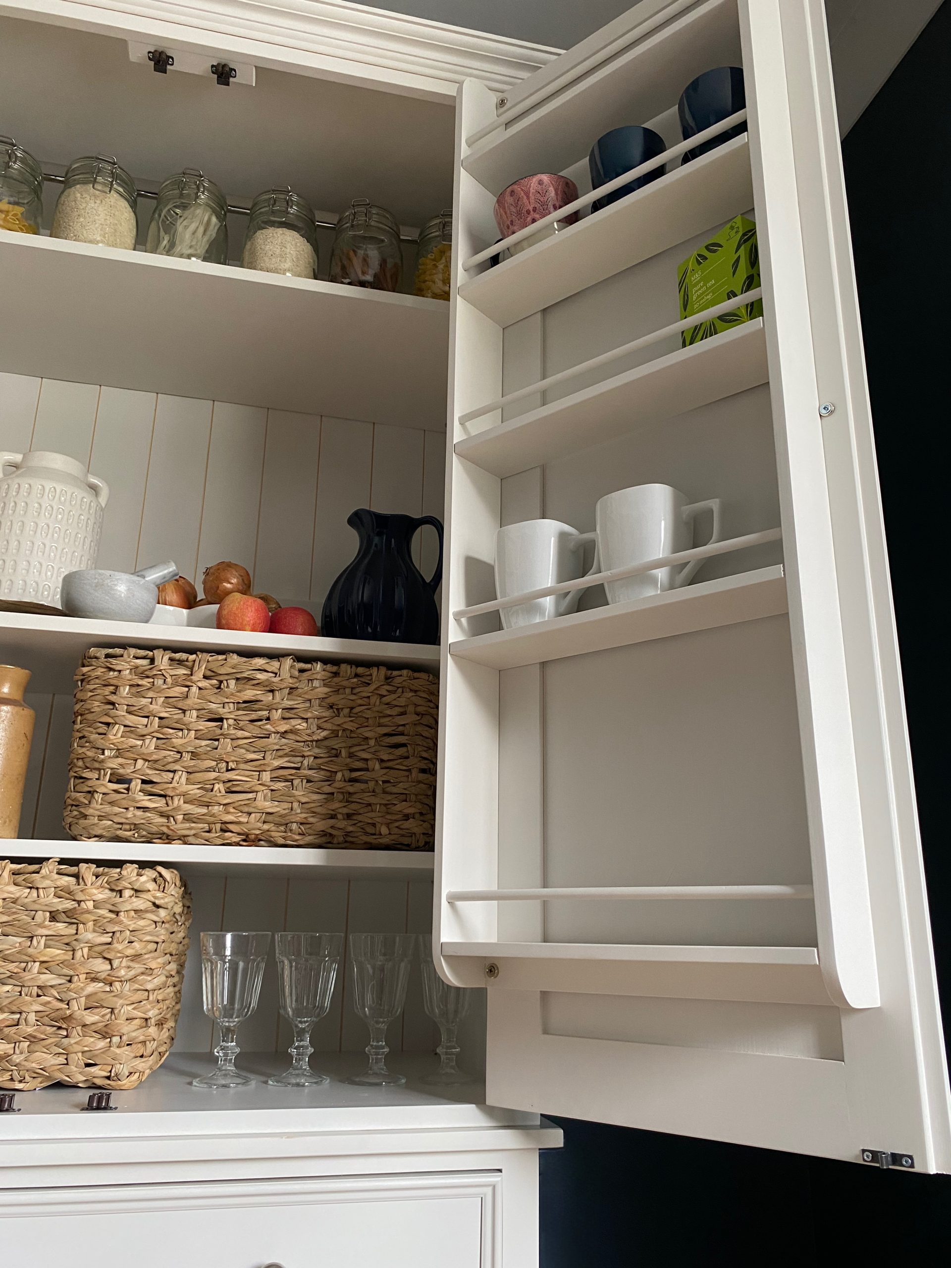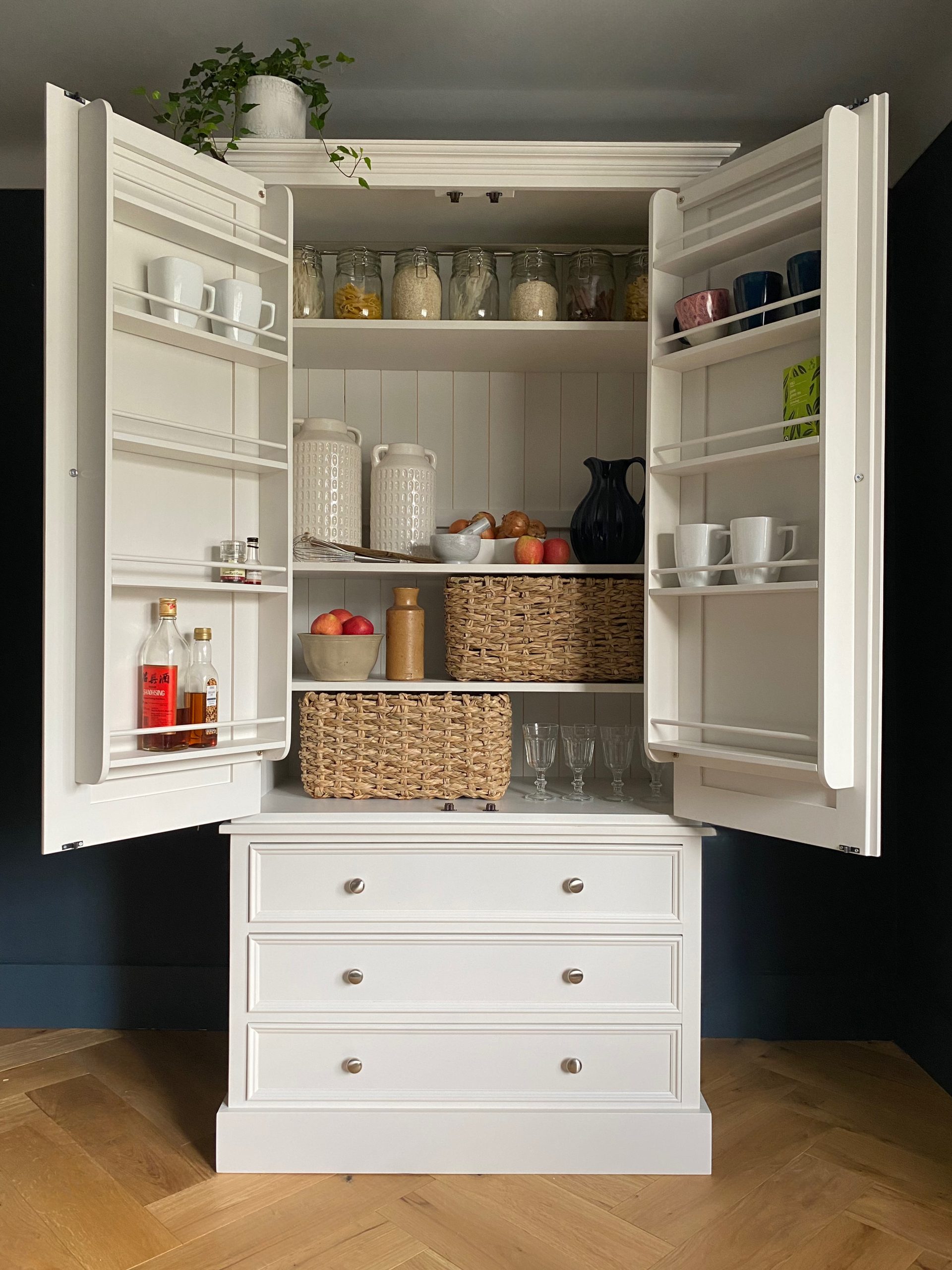This larder cupboard is so practical without compromising on style and elegance. It’s handcrafted in the UK from solid pine using time honoured techniques. Our furniture is all made to order, no flat pack or mass produced flimsy units. It would be painted in any Farrow and Ball colour of your choice so would work perfectly in any interiors.