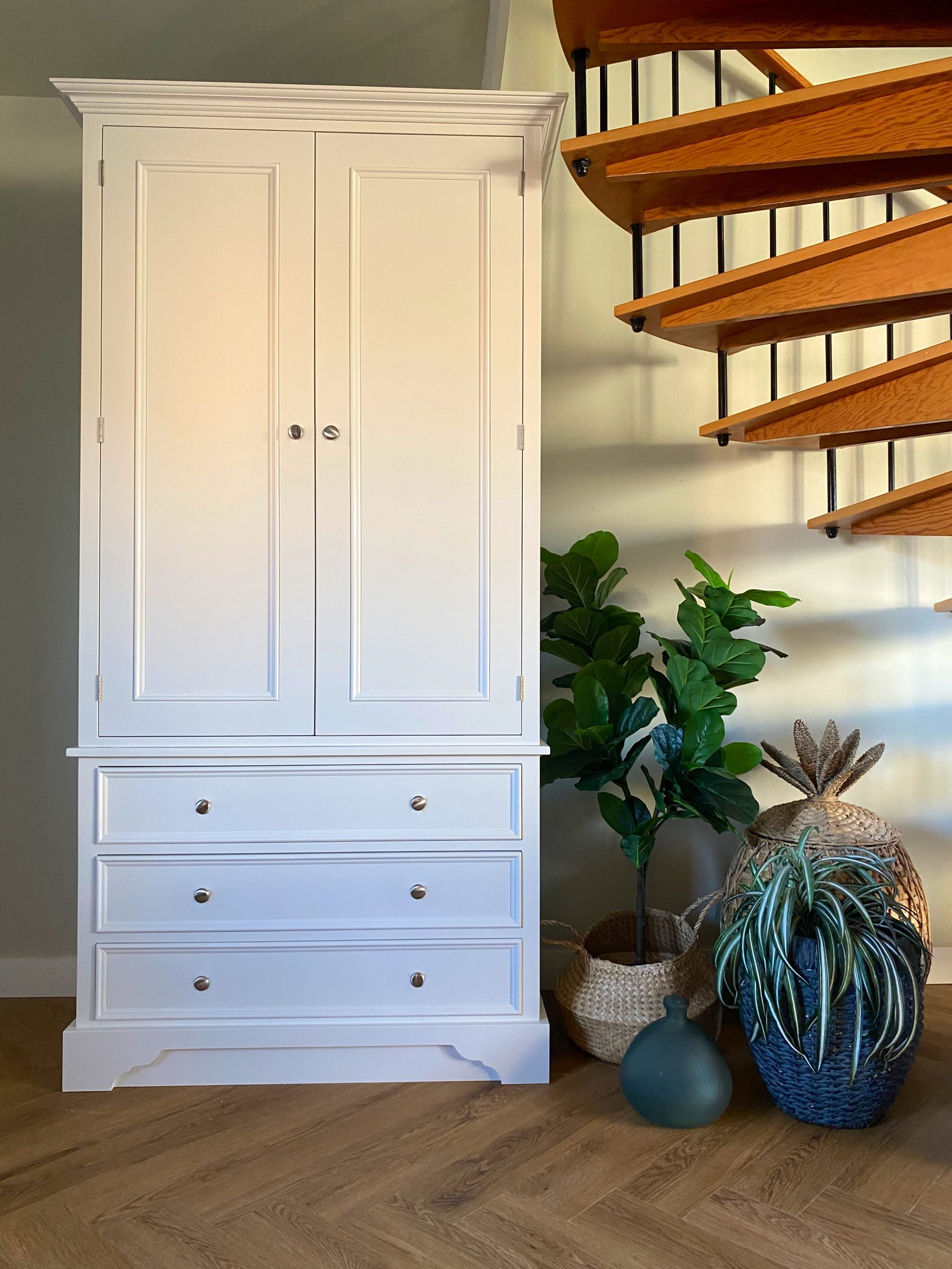 Highly functional, superbly practical and beautiful too. Larder cupboards are fast becoming an essential part of a well utilised kitchen. Being able to see everything upon opening the doors is wonderful. With big deep cupboards and spice/bottle racks on both doors. It’s design is also elegant and refined, is inspired by antique English furniture styles. They are also made using traditional cabinet making techniques from solid pine, they are built to last a lifetime. Painted in any Farrow and Ball colour of your choice.