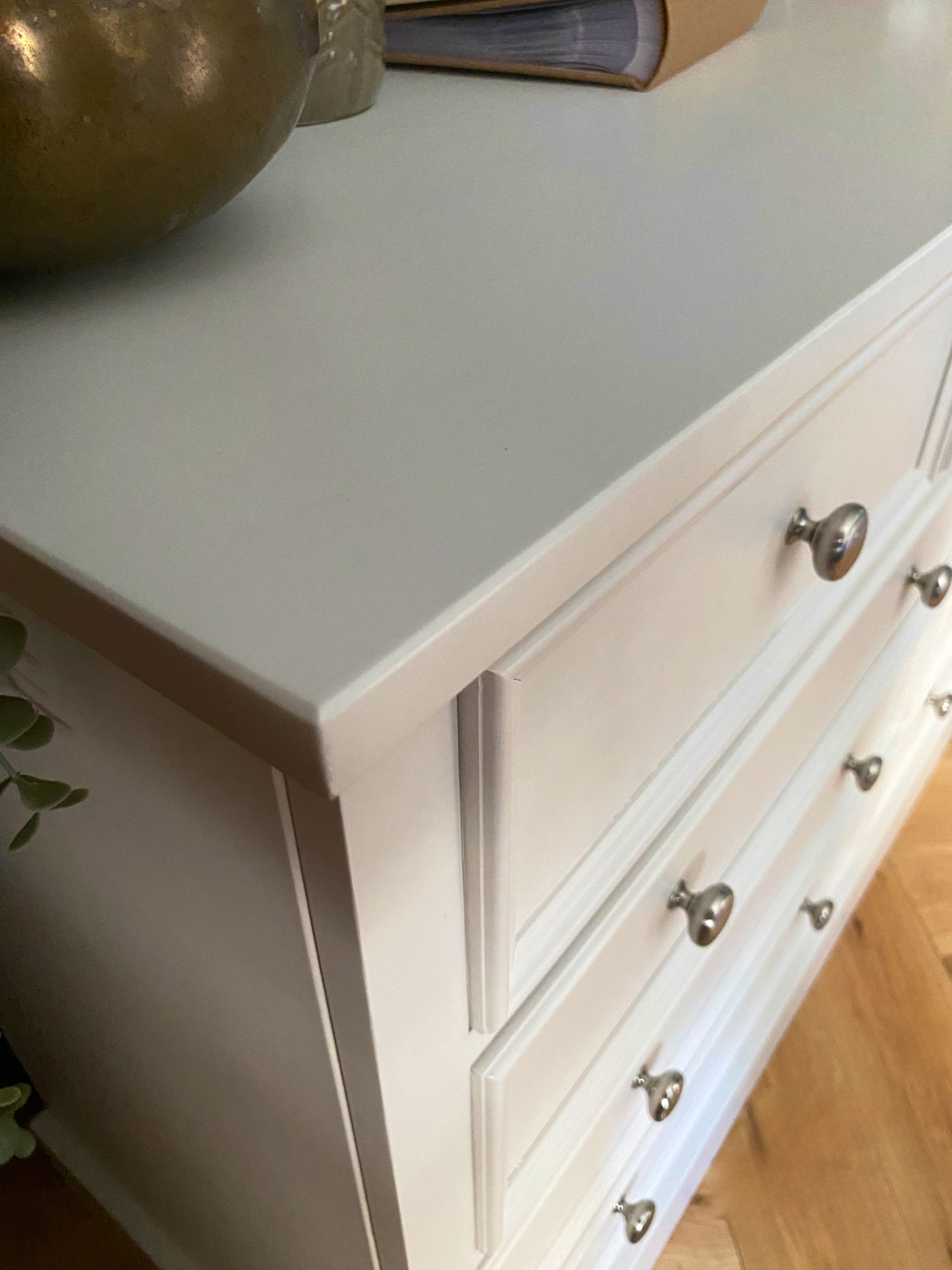 The biggest advantage of catalysed paint over standard types of paint is that it does not allow solvents through the surface. Most paints, over time, allow microscopic holes to form after they’ve dried, which enables liquids, air and other elements in the environment to deteriorate the paint. Because catalysed paint dries more quickly, holes take much longer to form, and the coat, therefore, lasts much longer than conventional paints. Catalysed paints, when applied, are hard and will also resist other materials permanently marking them, making them effective at repelling spilt Tea, crayons and make up! Basically, as in everything else, we try and use the best paints possible to ensure that your furniture is better finished and more hardwearing than the norm.