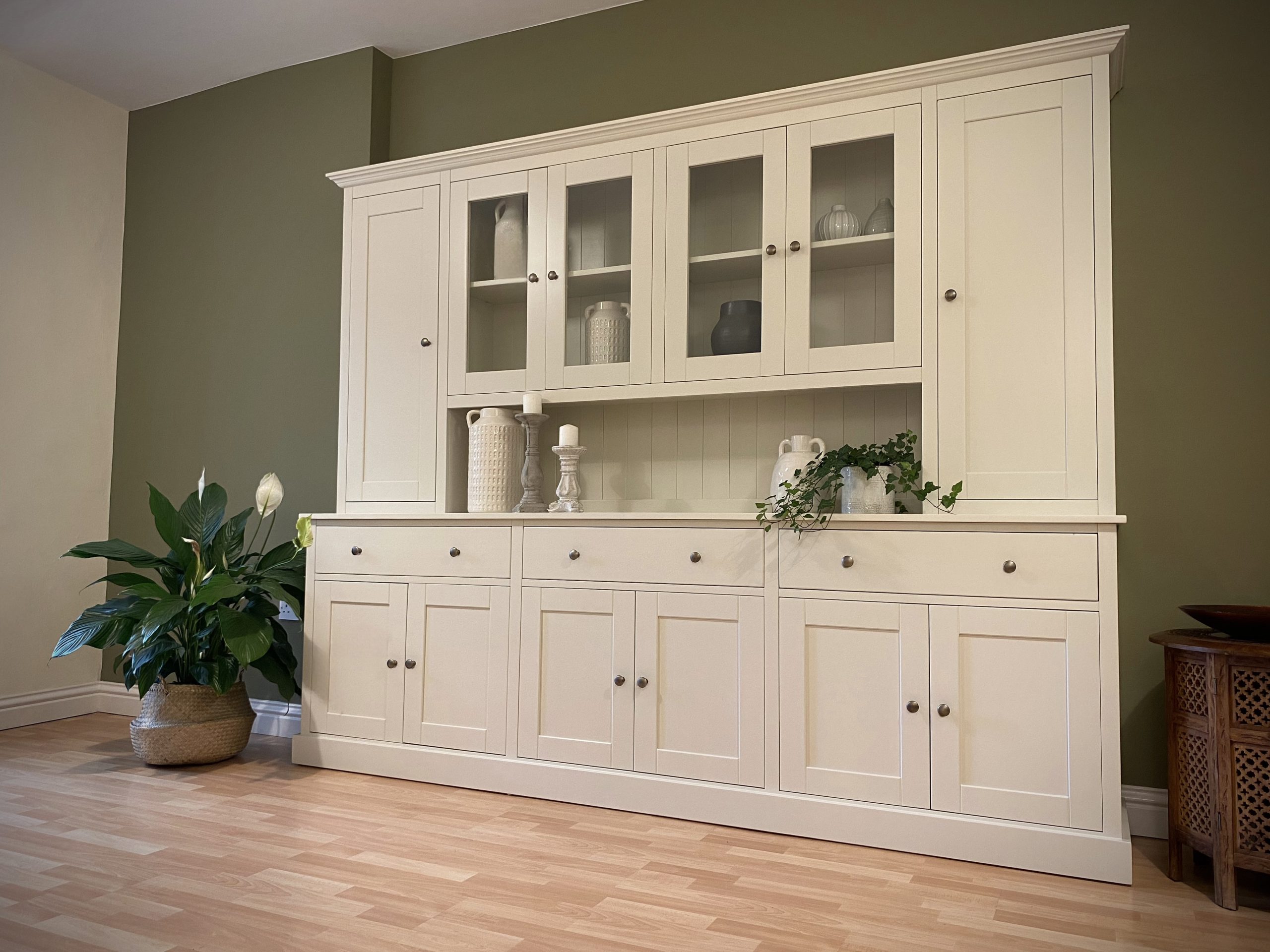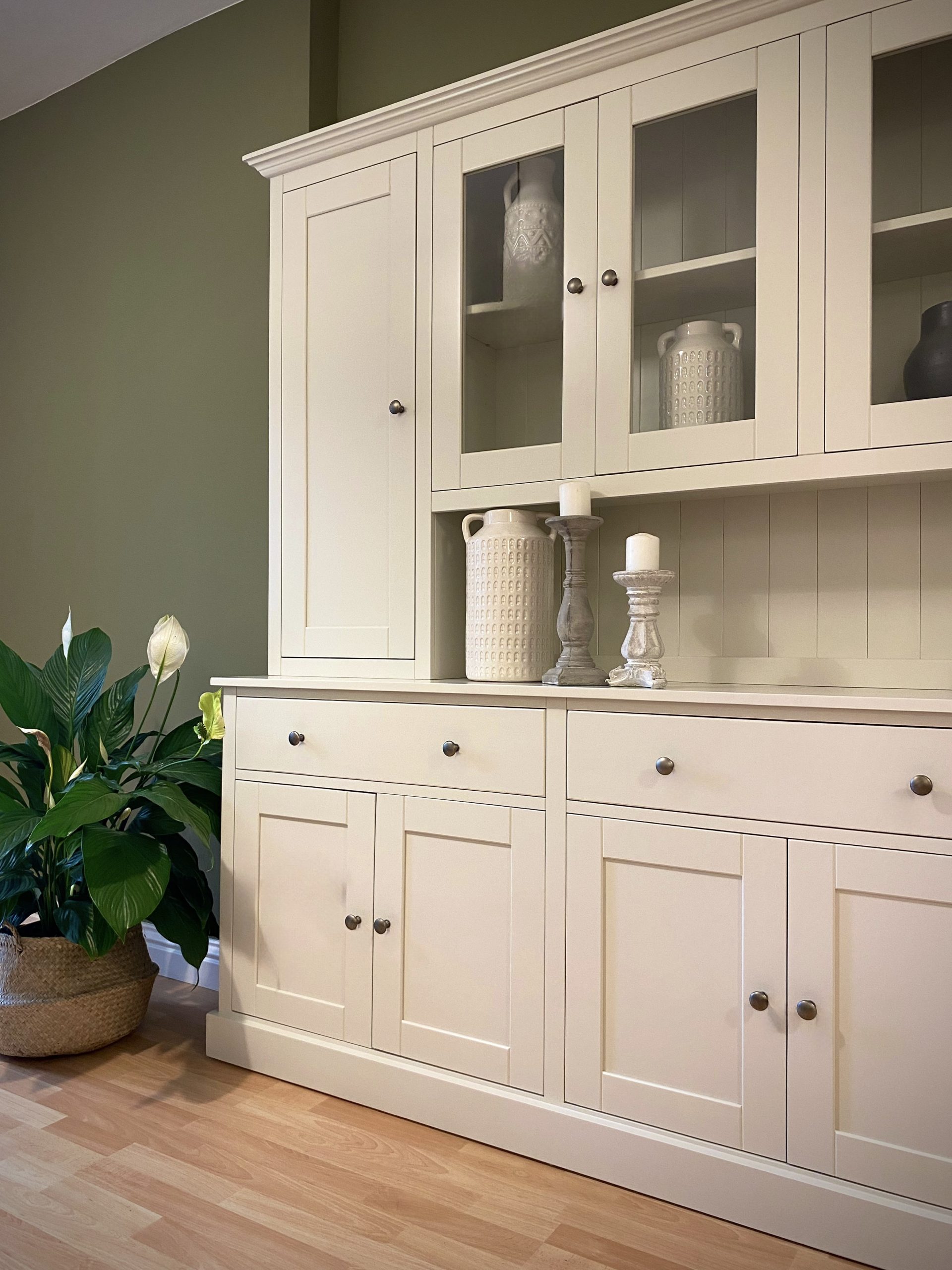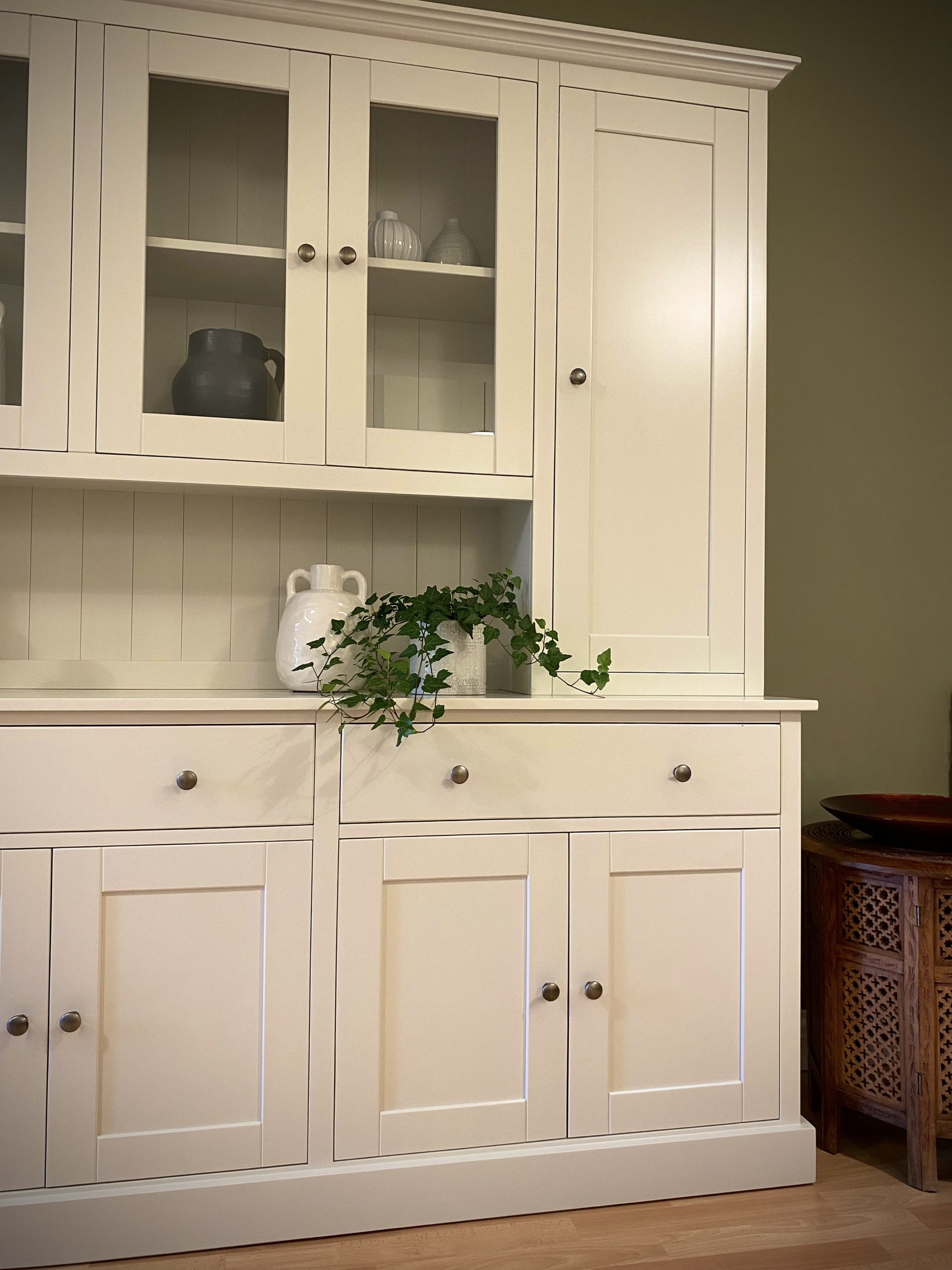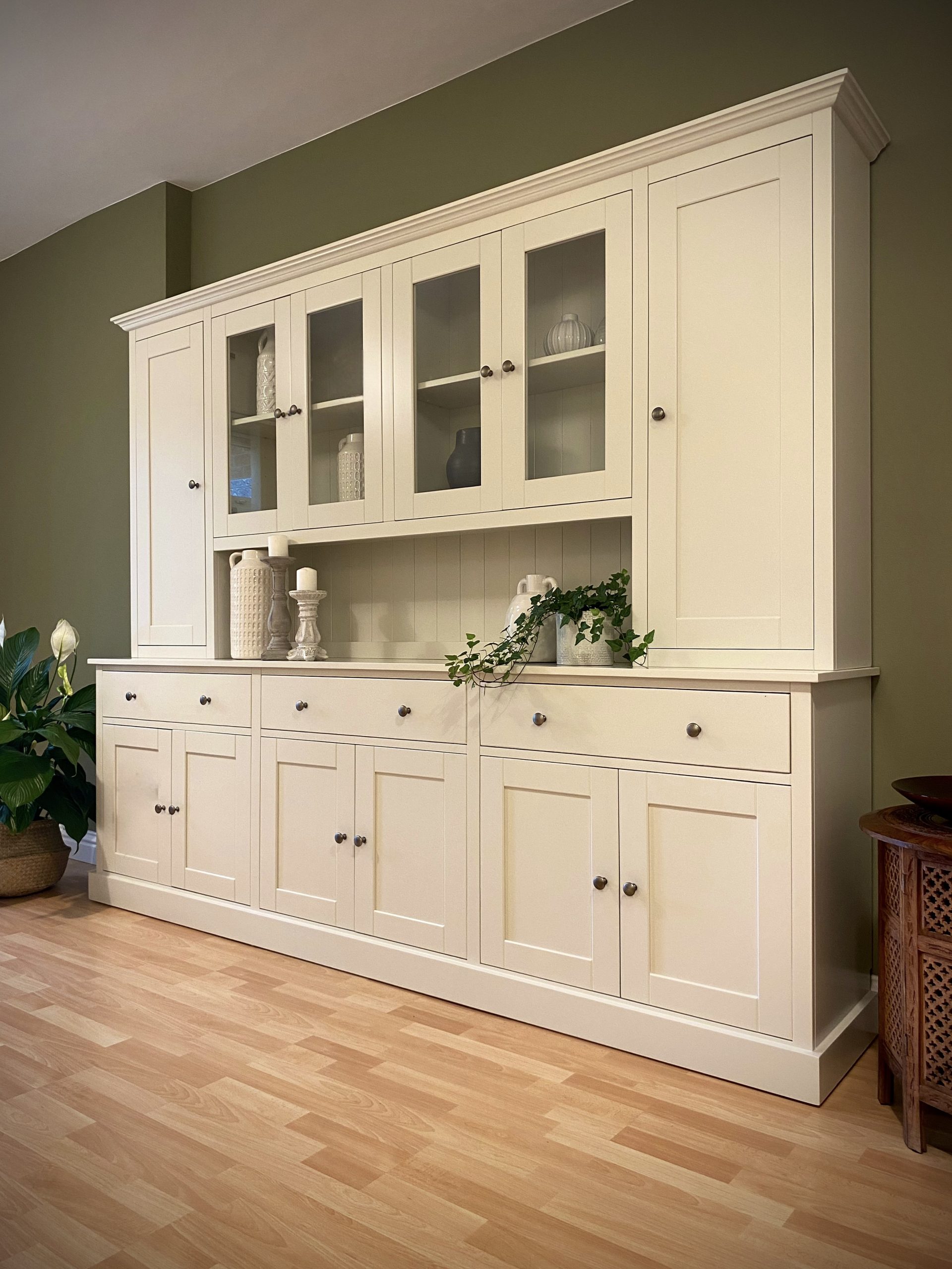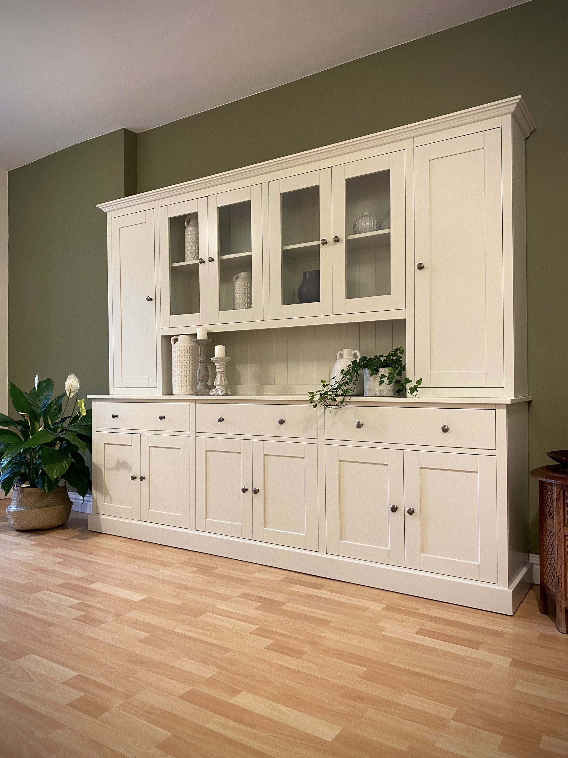 As all our furniture is handmade to order, we can offer this dresser but in bespoke sizes, we can change heights, widths and depths to suit your requirements. We can also accommodate different designs/layouts. This Welsh dresser will be painted in any Farrow and Ball colour of your choice.