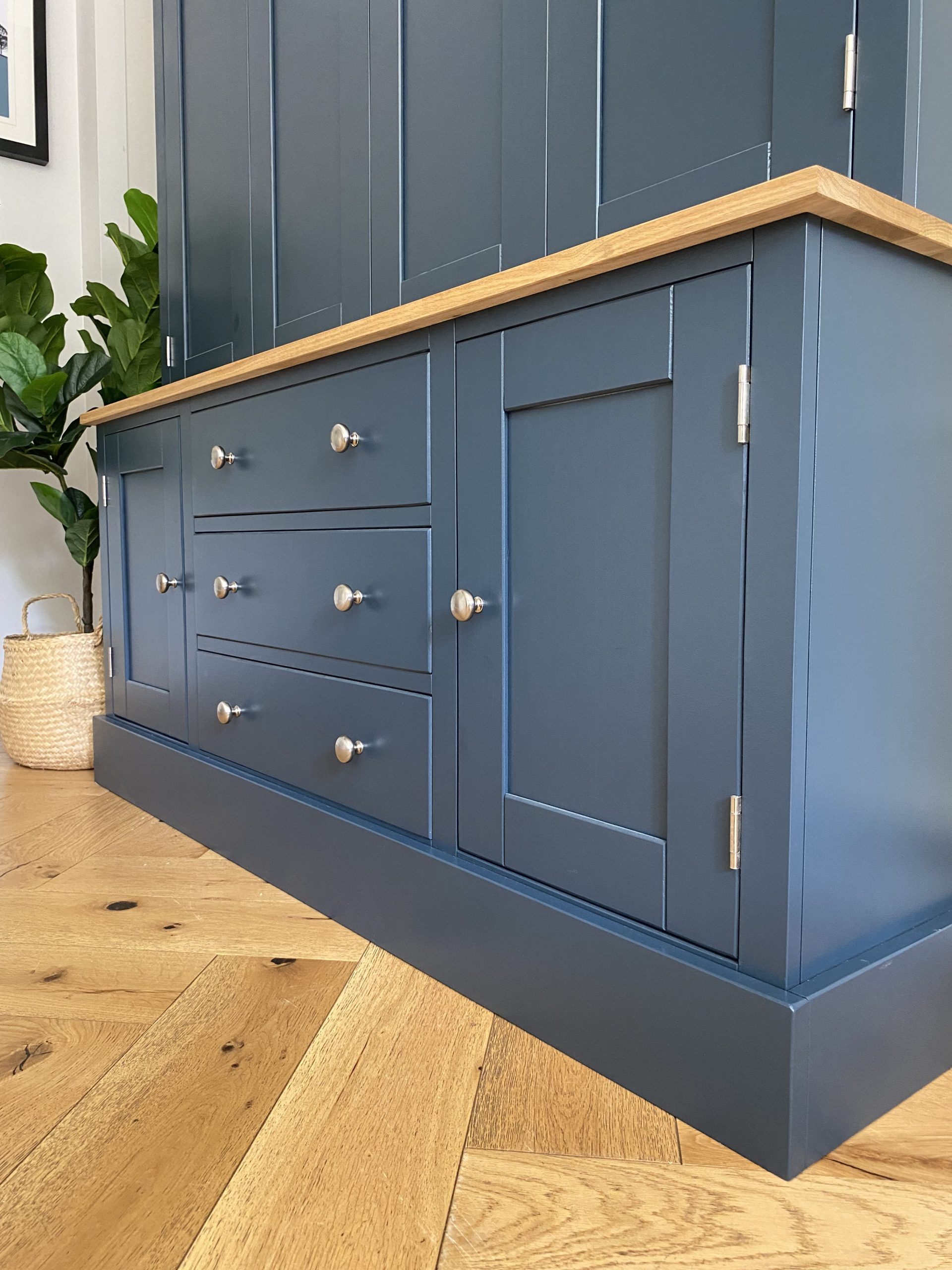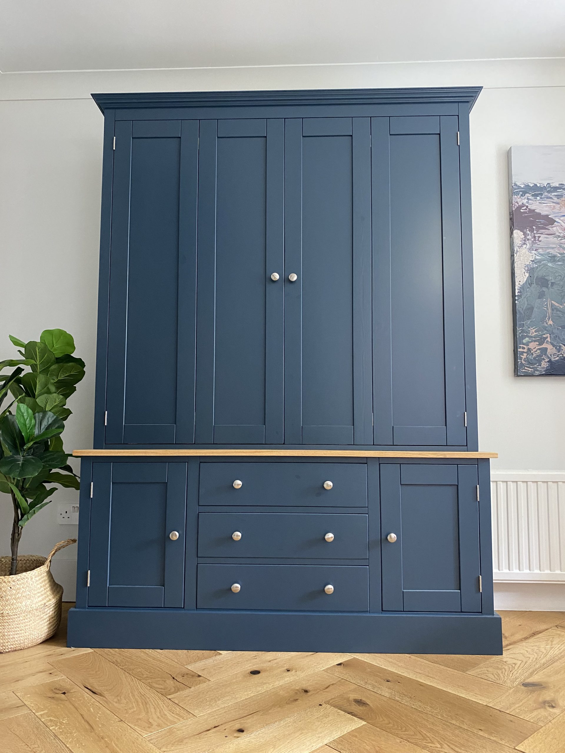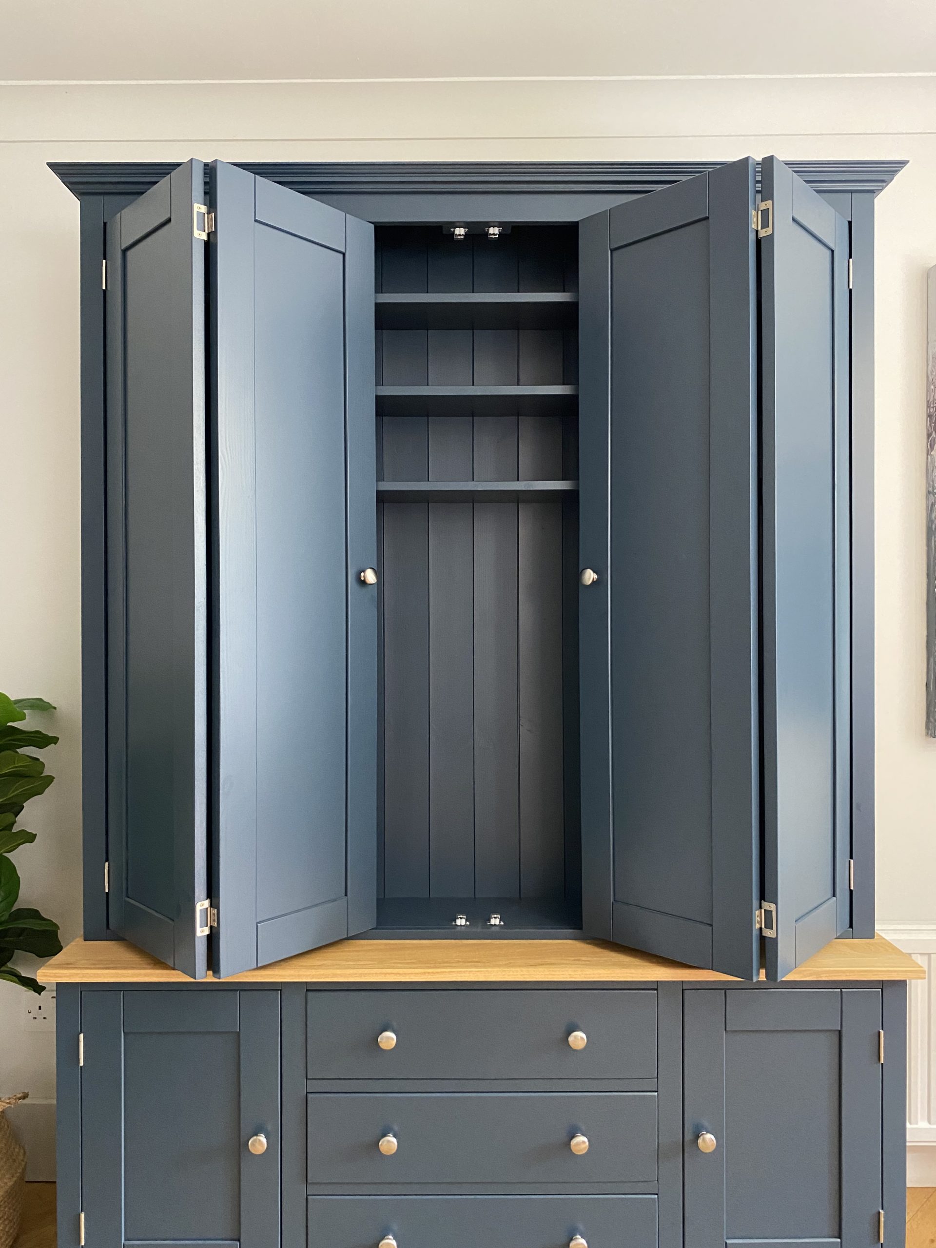 The paint used at our workshop for the painted furniture is a Catalysed Paint which is specially produced for furniture. It is very tough, hardwearing and also gives a beautifully smooth, wipeable finish. Not all manufacturers will use a catalysed paint because it is more expensive, but we believe it’s the best option for all painted furniture. The paint we use is a professional grade paint which is mixed to match any Farrow and Ball colour, as Farrow and Ball paint itself isn’t suitable for our spray system. Whilst the colours are incredibly accurate we can’t guarantee them to be 100% accurate